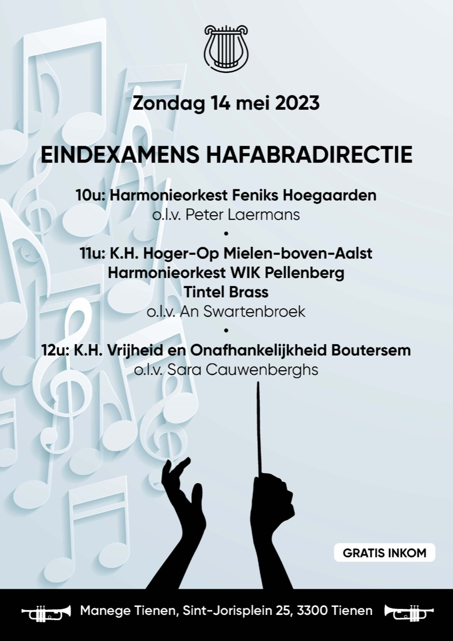Om 12u zetten we met onze Harmonie Vrijheid en Onafhankelijkheid ons beste muzikale beentje voor. We treden dan op in het kader van het eindexamen specialisatie Hafabra directie van onze dirigent Sara Cauwenberghs.